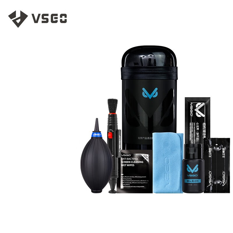 VSGO微高相机清洁套装 镜头清洁擦镜纸镜头纸气吹镜头笔皮老虎屏幕清洁剂布湿巾单反清洁套装 23合1价格:109.00元!
