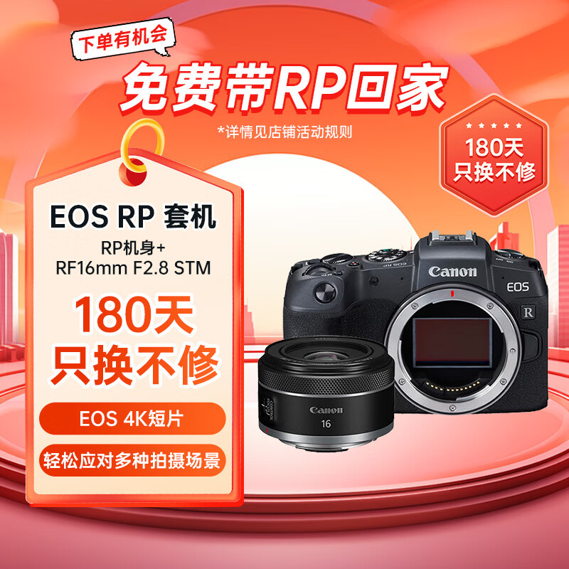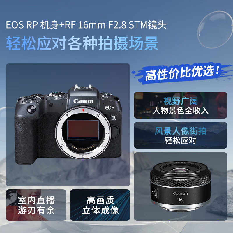 佳能(Canon)EOS RP+16mm F2.8 STM 全画幅微单数码相机套装( 约2620万像素/轻巧便携)价格:9398.00元!