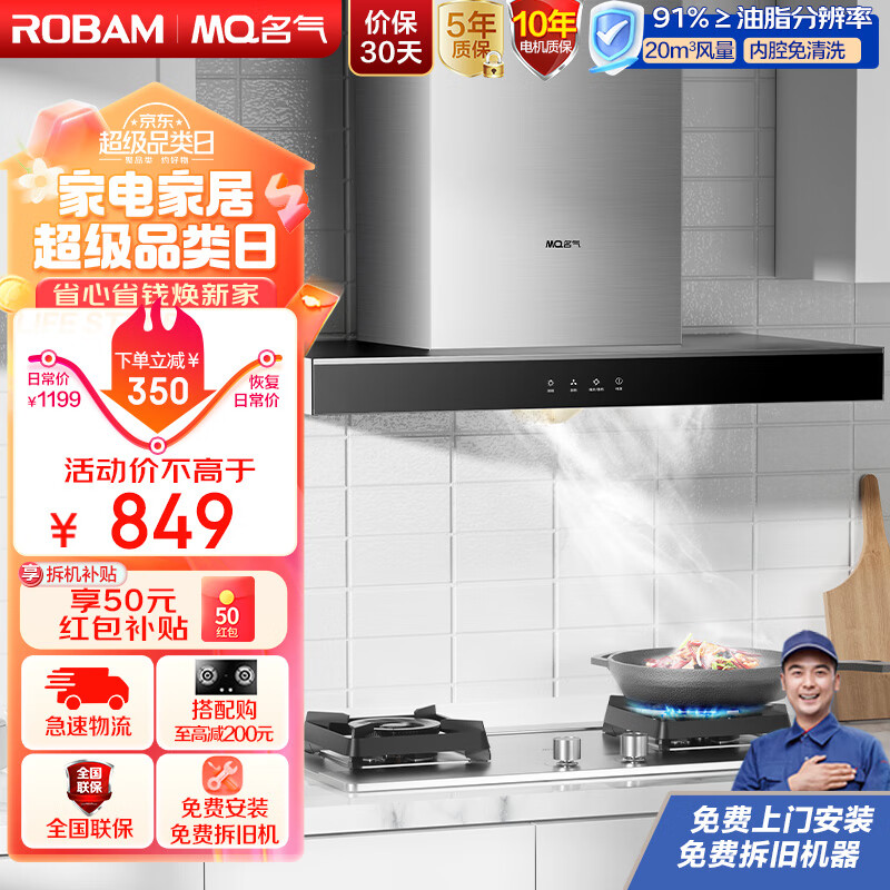 名气(MQ)老板抽油烟机 吸油烟机传统欧式油烟机家用厨房 20m3大吸力 脱排油烟机顶吸式6501A价格:849.00元!