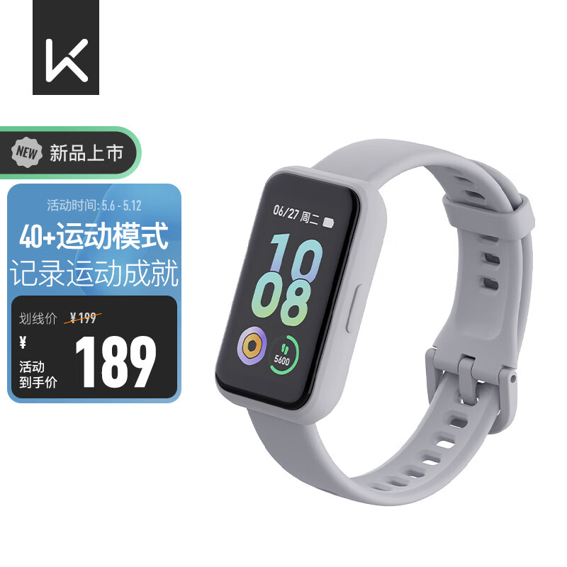 Keep智能运动手环 学生健身指标监测 40+种运动模式 B4 Lite -灰 母亲节礼物价格:189.00元!