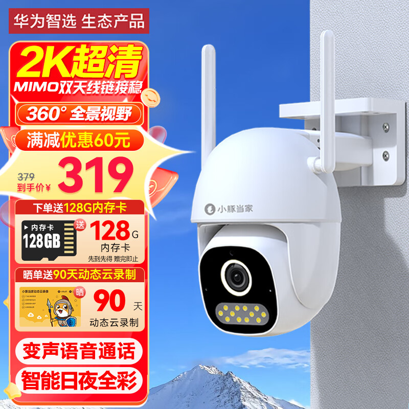 华为智选 小豚当家2K室外无线摄像头家用300万监控器360度无死角带夜视全景户外防水高清可对话手机远程价格:379.00元!