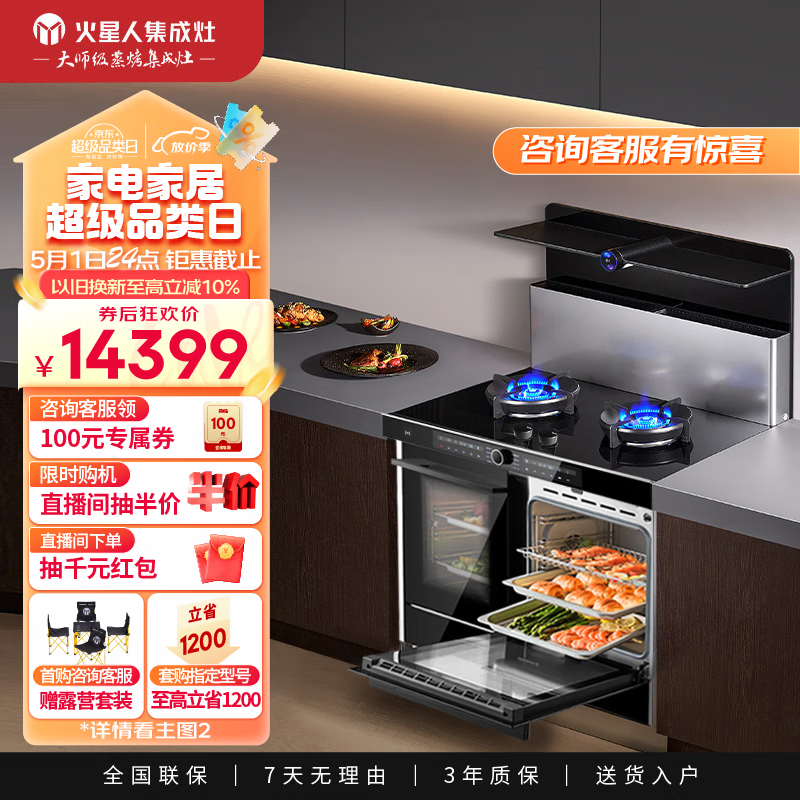 火星人集成灶T70BCZ蒸烤独立集成灶 智能蒸烤炸 家用蒸箱烤箱 燃气灶 天然气价格:14699.00元!