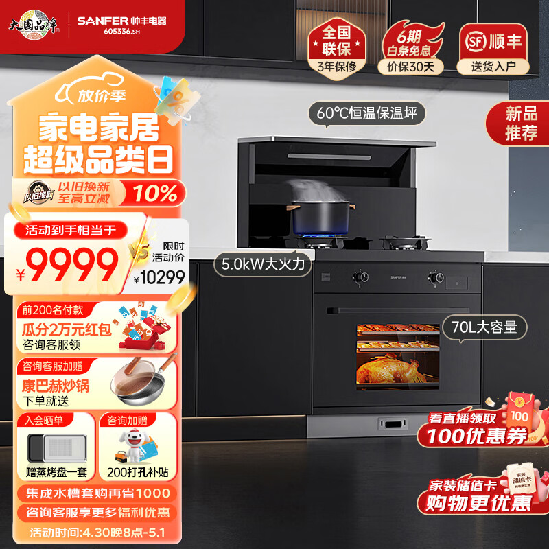 帅丰集成灶一体式 蒸烤箱一体机 家用蒸烤一体变频集成灶 TJ2-7B 5.0kW燃气灶 天然气价格:10299.00元!