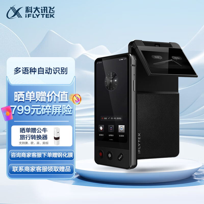 科大讯飞双屏翻译机 多语种离线翻译器 同声字幕翻译笔出国旅游口语实时翻译 商务黑价格:4999.00元!