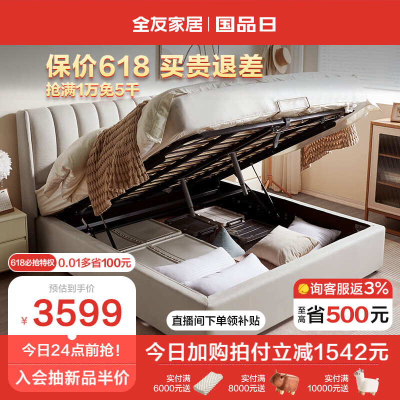 全友家居 床现代简约科技布床双人床卧室储物高箱床1.8米家具105207C价格:5141.43元!