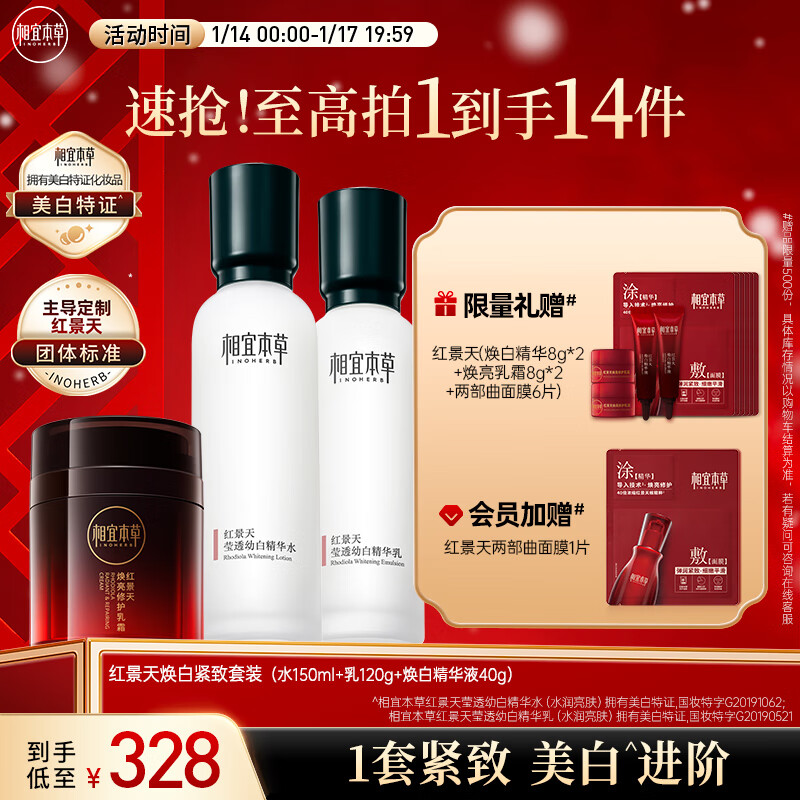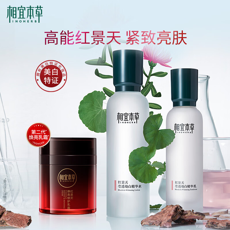 相宜本草 红景天套装(精华水150ml+精华乳120g+修护乳霜50g)价格:328.00元!