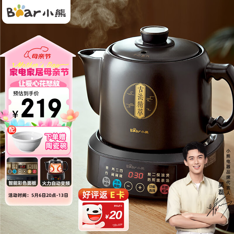 小熊(Bear)中药壶 煎药壶 全自动免看管中药锅电煎壶 家用分体式陶瓷熬药壶3L大容量变频萃取JYH-D30Z1 二煎价格:219.00元!