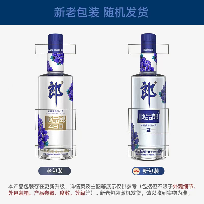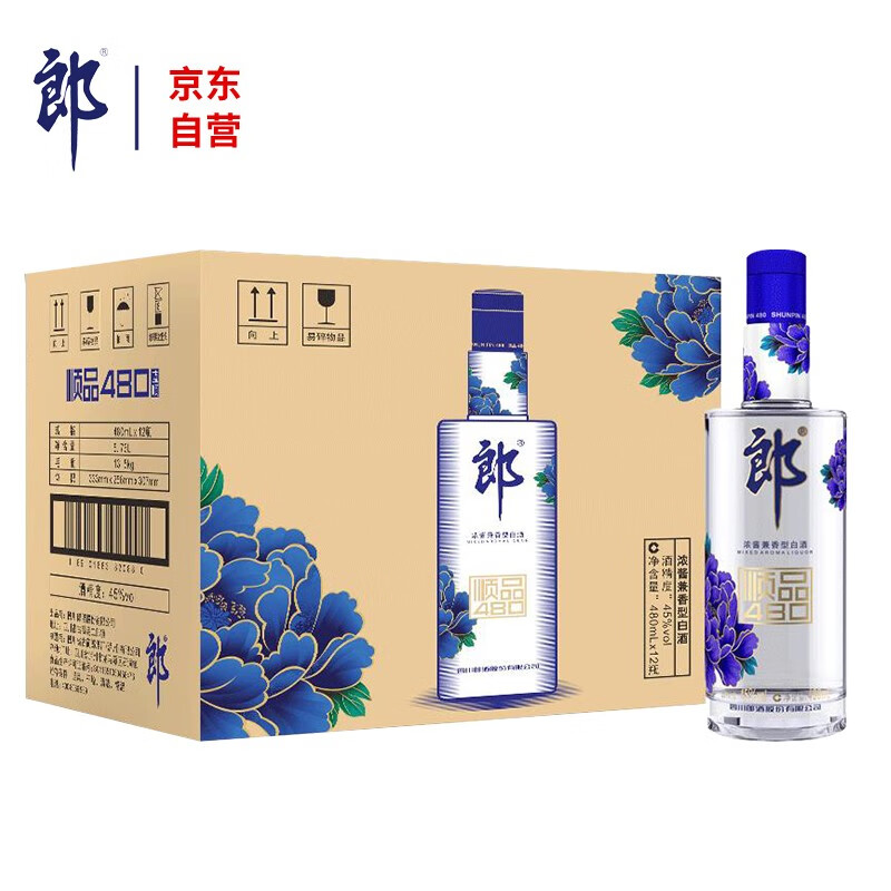 郎酒 顺品郎蓝顺 浓酱兼香型白酒 45度480ml*12瓶 整箱装价格:960.00元!