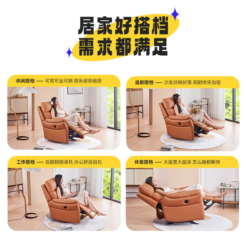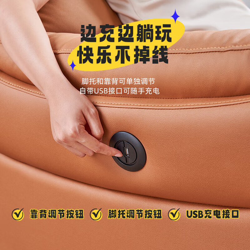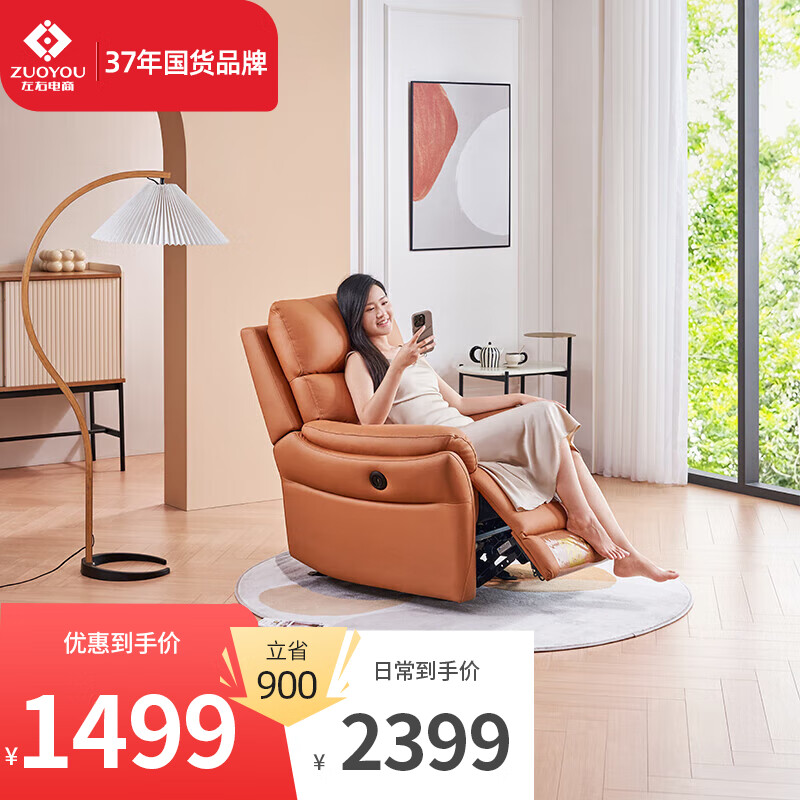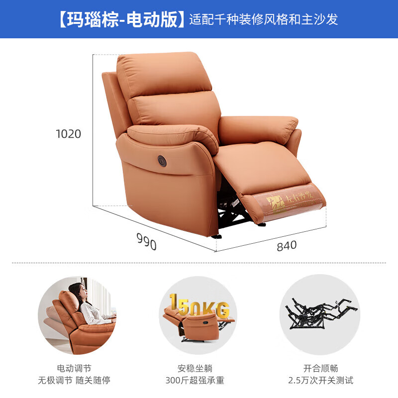 左右沙发皮感科技布电动不带摇单人沙发椅DZY6010-D 暮光橙31055价格:2399.00元!