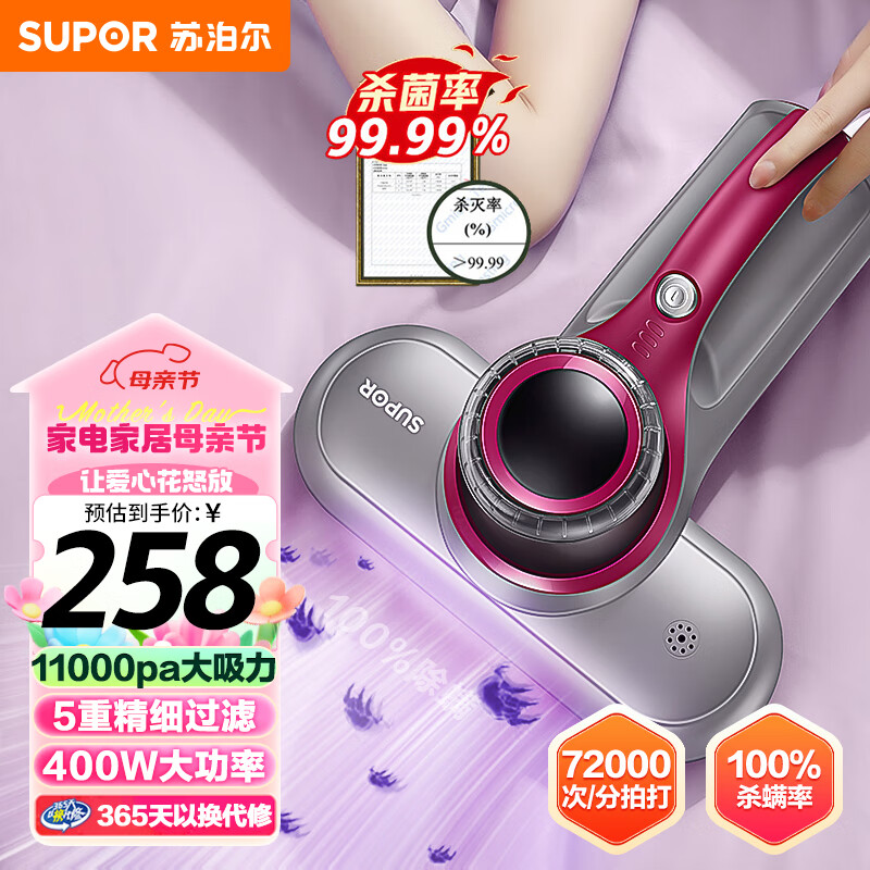苏泊尔 (SUPOR )除螨仪手持家用吸尘高频双拍打深层次除螨 紫外线杀菌除螨仪 VCM05S价格:258.00元!