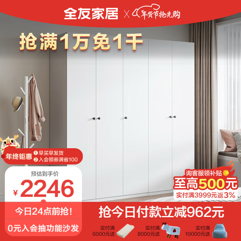 全友家居 衣柜简约风卧室衣物收纳纯色百搭多规格平开门家具DG10009价格:3208.57元!