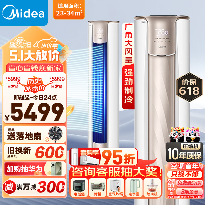 美的(Midea)锐静一级2匹空调变频柜机立式客厅冷暖两用制冷制热大风口空调家电以旧换新51VHC1Ⅱ【锐云升级】价格:5499.00元!