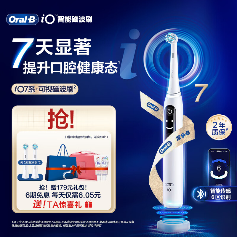 欧乐B成人电动牙刷iO7智能可视磁波刷iO系列圆头微震科技深度清洁牙龈按摩送礼送男友送女友母亲节礼物价格:998.90元!