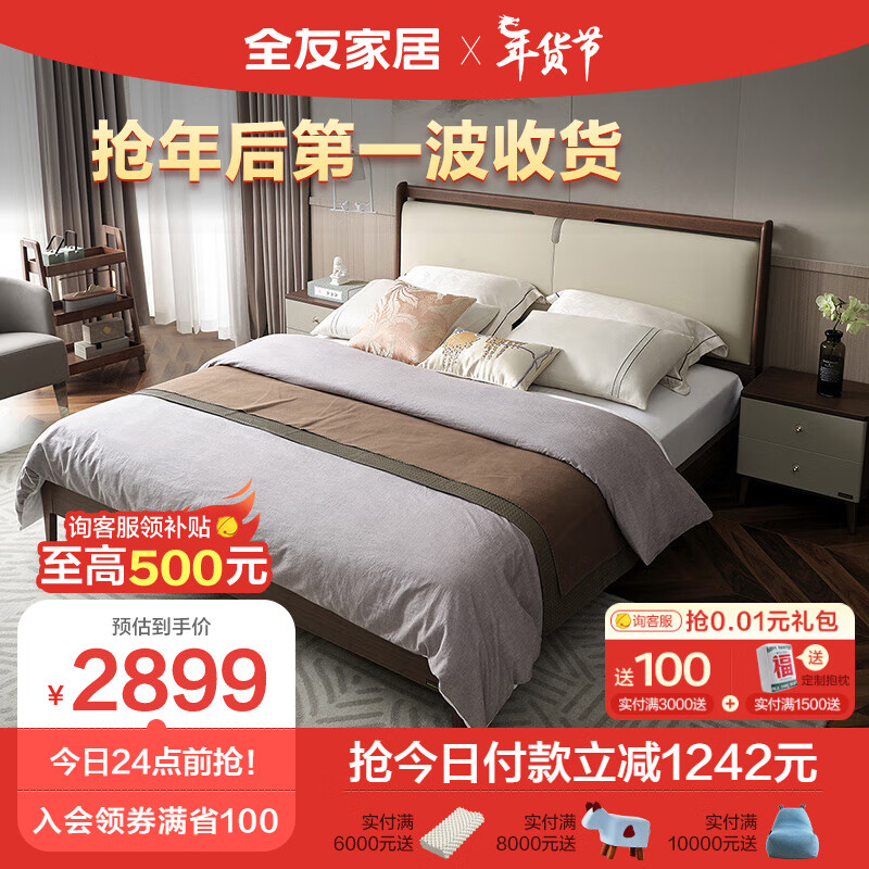 全友家居 床新中式皮艺软包床双人床稳固实木脚1.8米轻奢家具129701价格:4141.43元!