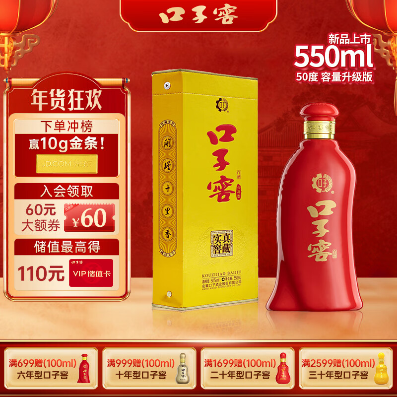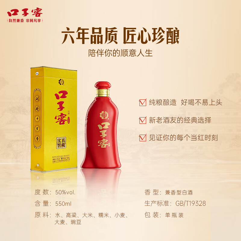 口子窖六年型 兼香型 白酒 50度 550ml 单瓶装【容量升级版】送礼宴请价格:194.00元!