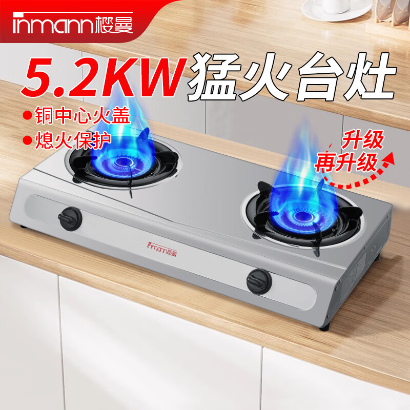 樱曼 燃气灶 煤气灶 家用台式双灶 5.2KW 大火力猛火爆炒不锈钢炉具 JZT-T2-120Y1(天然气)价格:218.00元!
