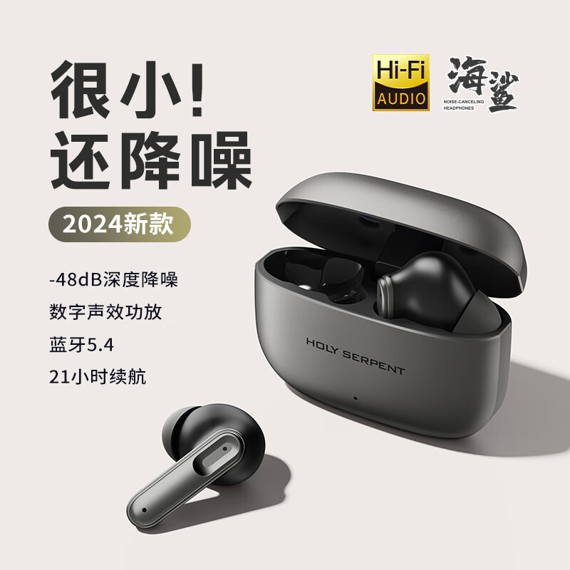 蛇圣海鲨【柏林之声丨超感音质】ANC主动降噪真无线蓝牙耳机入耳式游戏通话降噪电竞音乐HiFi运动跑步 钛金灰【AAC无损音质|蓝牙5.4】 兼容苹果安卓系统手机通用价格:255.55元!