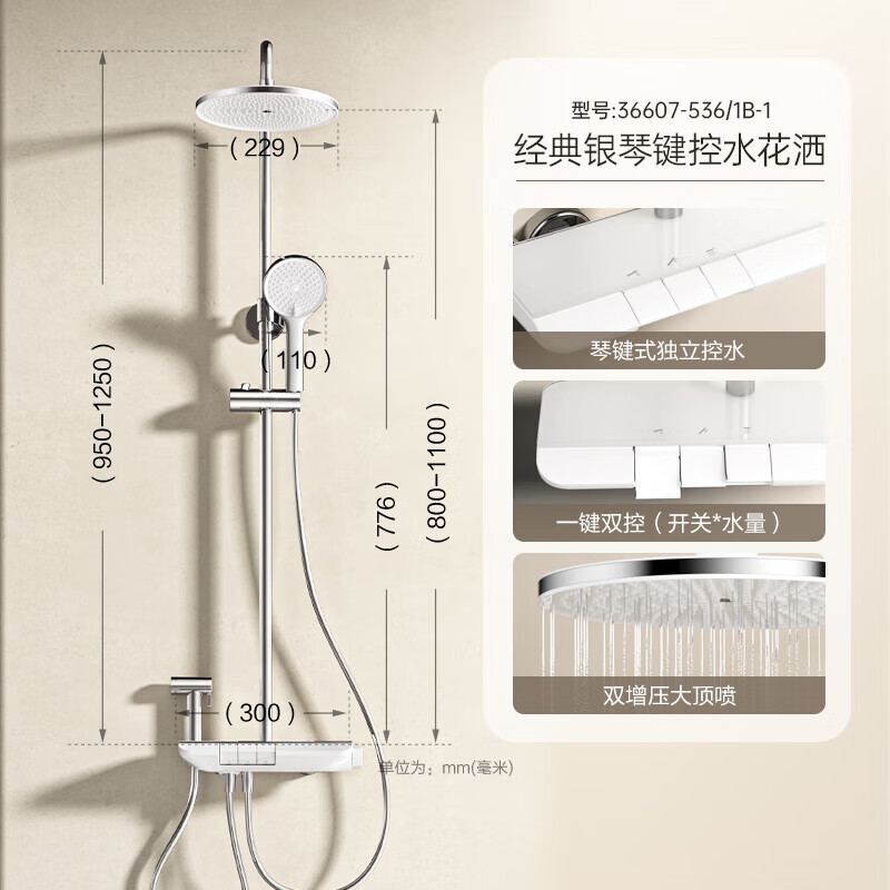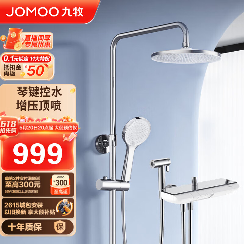 九牧JOMOO花洒全套琴雨钢琴按键升级款双增压顶喷置物36607-536/1B-1价格:1299.00元!