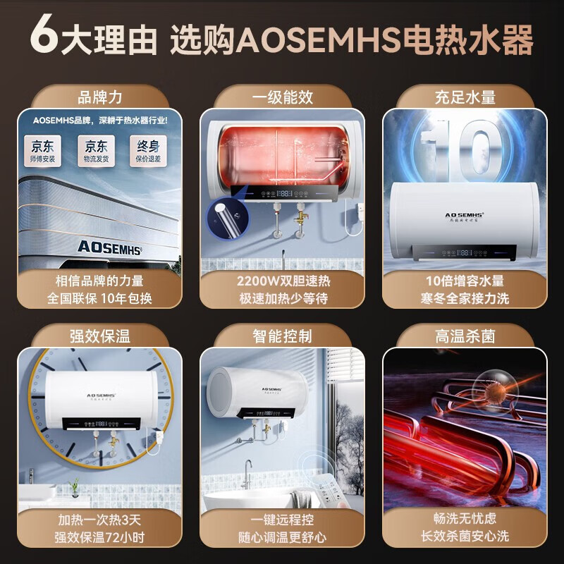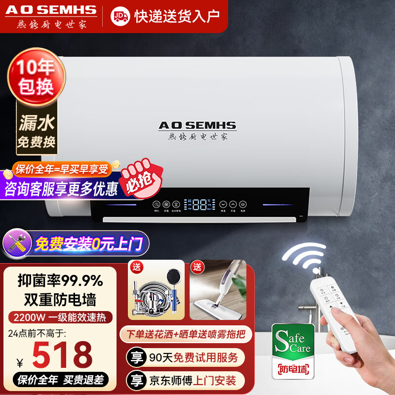 AOSEMHS热水器电热水器家用洗澡一级能效储水式速热电热水器40升2200W-DSZF-T02Y40价格:518.00元!