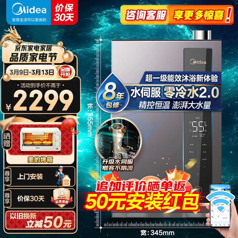 美的(Midea)燃气热水器天然气16升超一级能效零冷水家用智能手机控制恒温节能JSLQ27-16LN3价格:2399.00元!