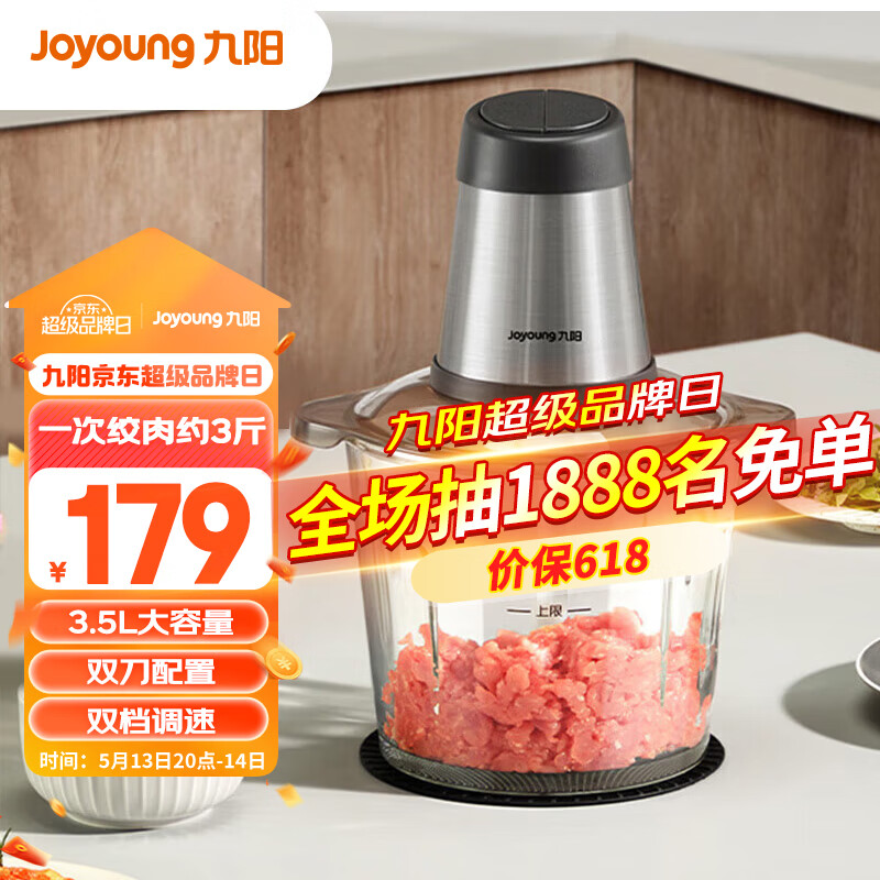 九阳(Joyoung)绞肉机家用电动多功能料理机搅拌婴儿辅食机切菜绞馅不锈钢碎肉S35-LA551(D)价格:179.00元!