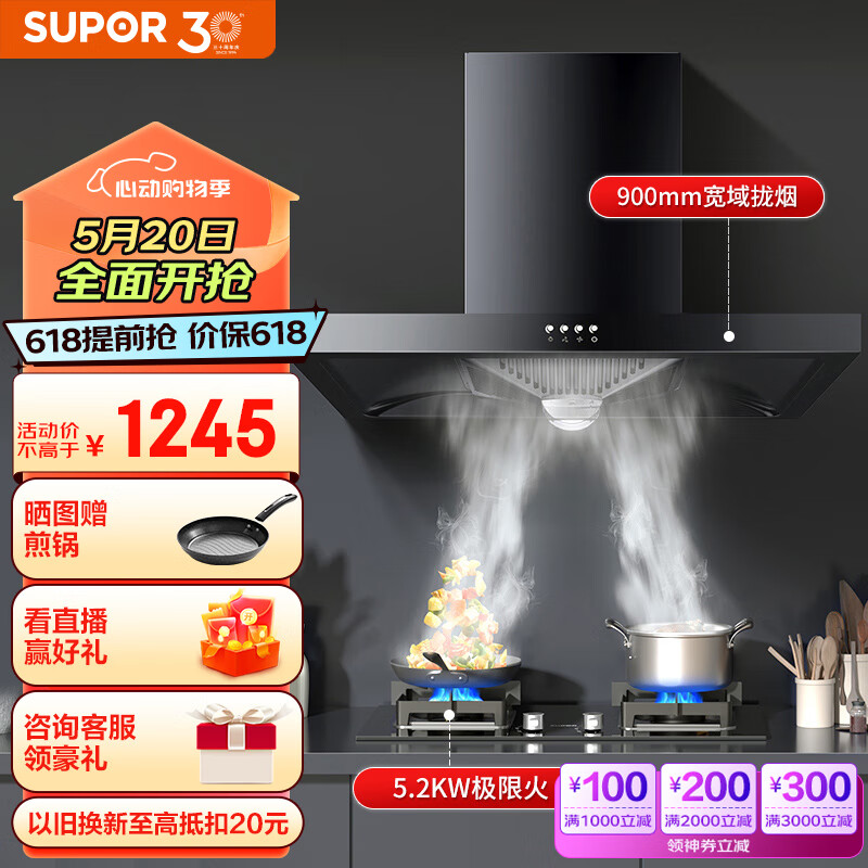 苏泊尔(SUPOR)排油烟机 宽域拢烟大吸力油烟机 家用易清洁欧式顶吸抽油烟机 吸油烟机燃气灶套装DT10+DB27液化气价格:1245.00元!