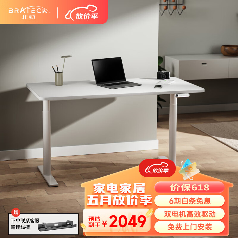 Brateck双电机电动升降电脑桌 北弧站立办公升降书桌 升降台 M1白1.5米价格:2329.00元!
