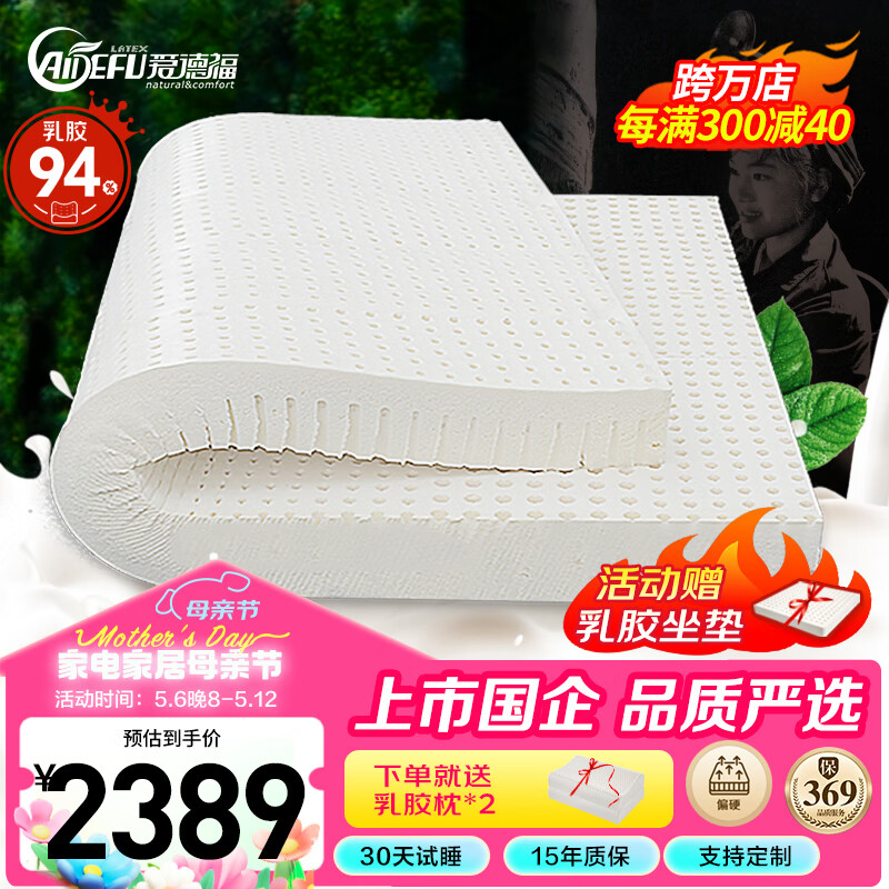 爱德福乳胶床垫泰国进口天然乳胶 榻榻米1.8m单双人180*200*15(95D)价格:2849.00元!