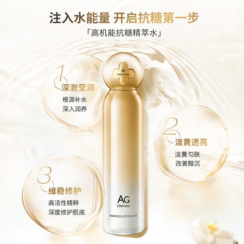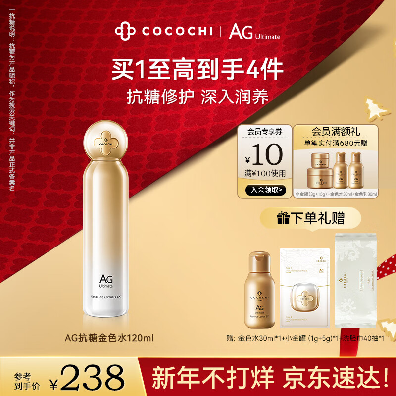 COCOCHICOSME蔻蔻琪AG抗糖小金水 水乳套装补水保湿修护提亮滋润护肤120ml价格:238.00元!