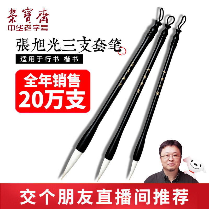 荣宝斋 毛笔套装 狼兼毫墨汁书法国画大中小楷套装初学者行草楷隶篆书笔文房四宝 张旭光套装三支价格:168.00元!
