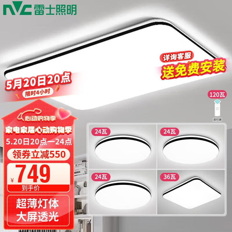 雷士照明(NVC)LED吸顶灯大灯北欧风现代简约超薄灯饰灯具客厅无极调光三室两厅价格:1299.00元!