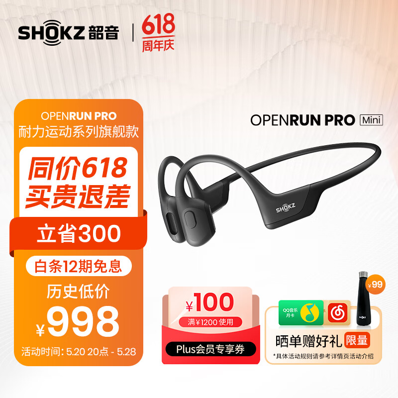 韶音(SHOKZ)OpenRun Pro骨传导蓝牙无线开放式耳机耳麦 不入耳式运动高音质 低频增强S810 Mini版骑士黑价格:998.00元!