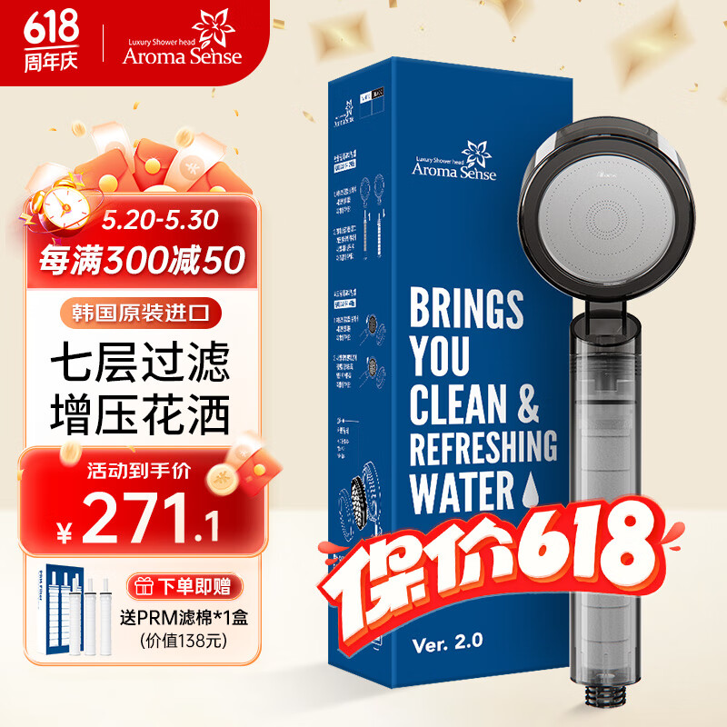 Aroma Sense淋浴花洒喷头增压韩国进口活性碳过滤除氯净水加压手持莲蓬头 PR9000花洒黑色标配价格:338.00元!