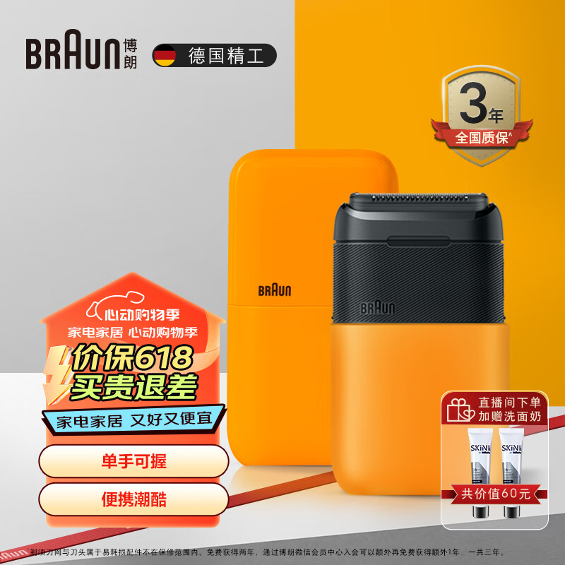 博朗(BRAUN)X系便携式迷你电动剃须刀德国进口刀头往复式剃须刀刮胡刀男士男生生日礼物送老公价格:279.00元!