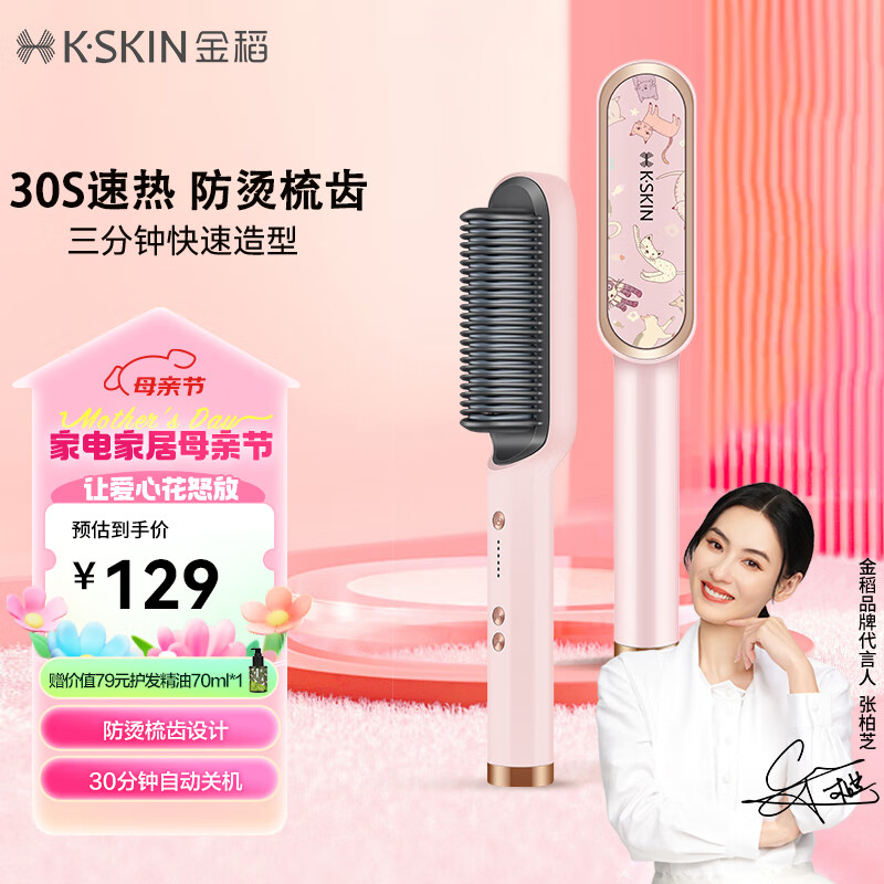 金稻直发梳夹板卷发棒内扣直板夹造型梳子 三分钟快速造型30秒速热恒温护发 KD380粉色 母亲节礼物女价格:179.00元!