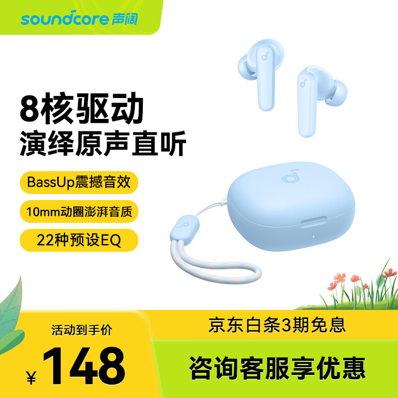 声阔P20i 真无线蓝牙耳机TWS入耳式音乐游戏耳机高清通话降噪低延迟蓝牙5.3 适用苹果华为小米蓝价格:148.00元!