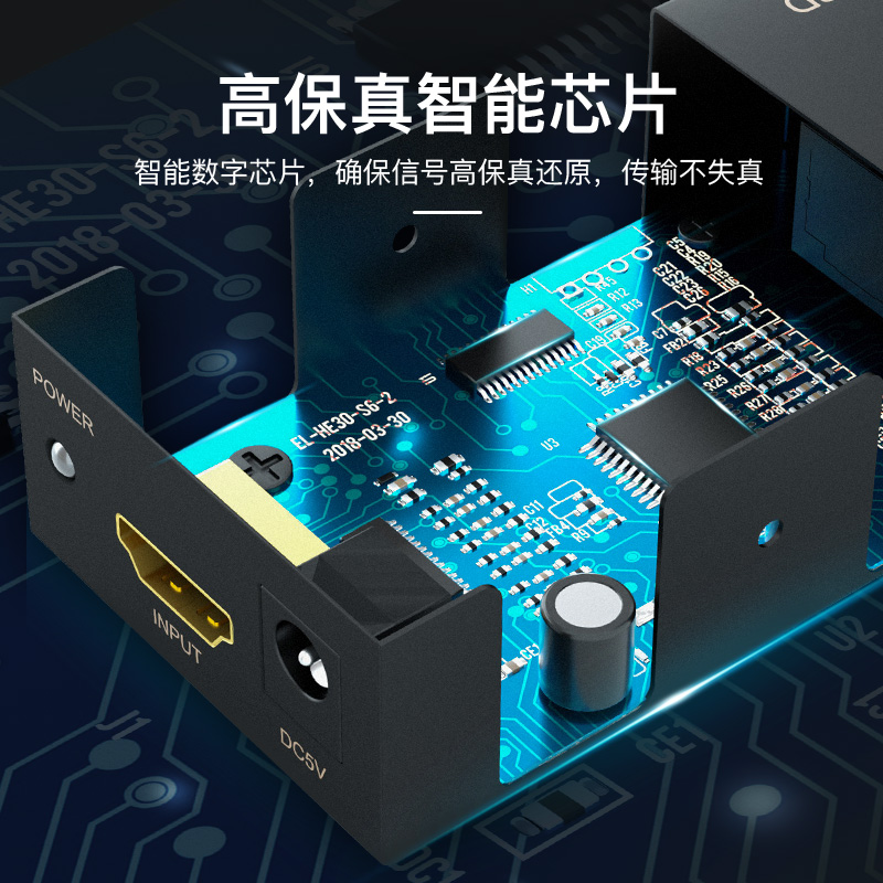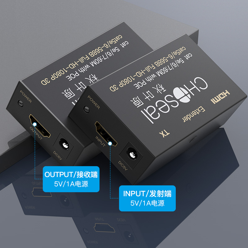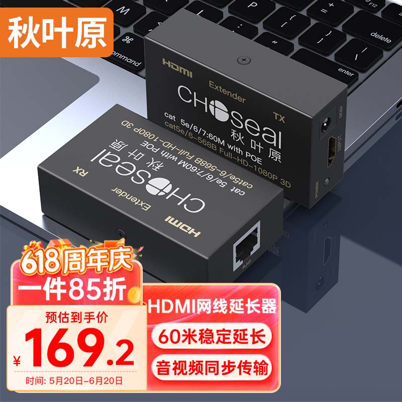 秋叶原HDMI延长器60米 HDMI转RJ45网口转换器 高清网络传输信号放大器 发射器接收器套装 黑 QVC01价格:199.00元!