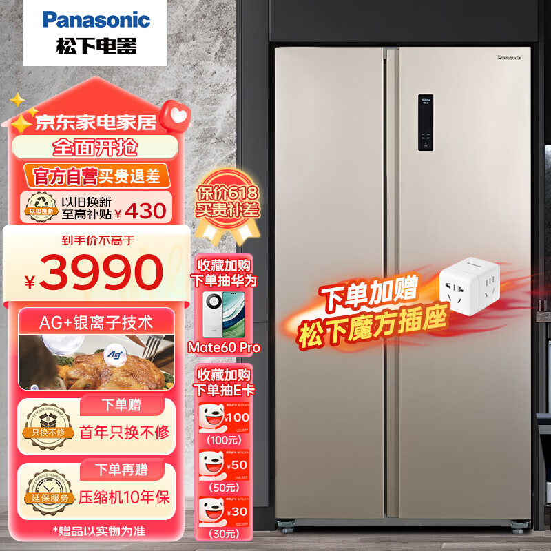 松下(Panasonic)对开门冰箱632升一级能效风冷无霜银离子净味360°风冷循环家用冰箱NR-B631WP-GH优选以旧换新价格:3890.00元!