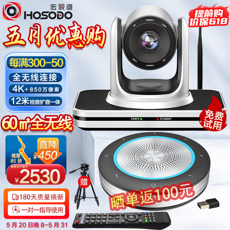宏视道 视频会议套装7倍变焦4K云台无线摄像头/摄像机无线蓝牙全向麦克风扬声器/话筒音箱解决方案TZ2W价格:2980.00元!