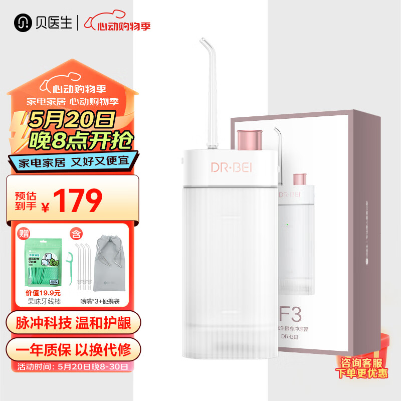 贝医生(DR·BEI)正畸便携冲牙器家用牙套洗牙器洁牙器水牙线清洁口腔 国货旅行清洁洗漱 送女友520礼物 冲牙器F3【内配3喷嘴】 3支喷头价格:179.00元!
