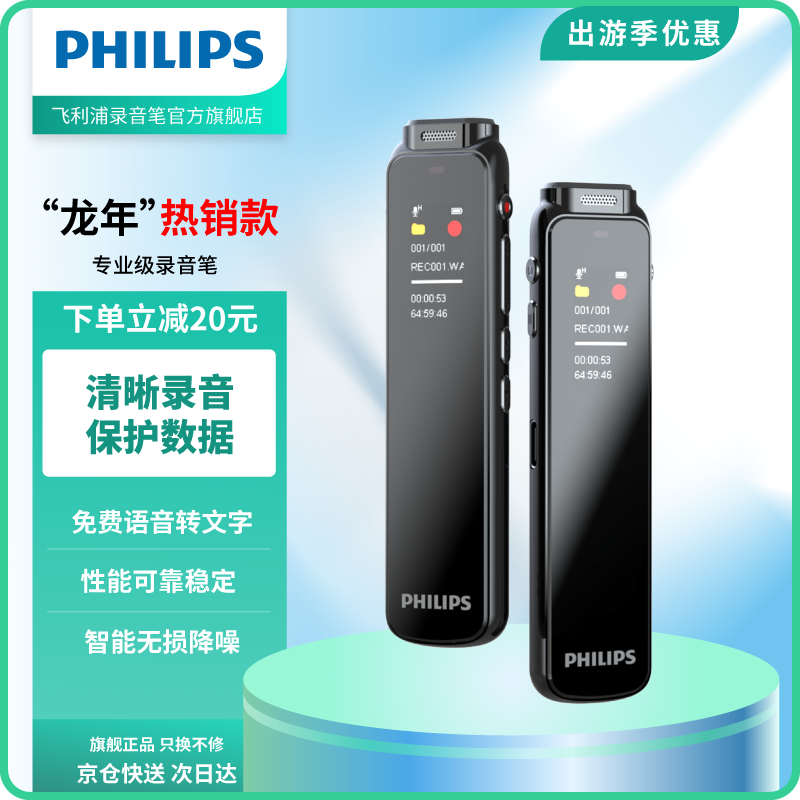 飞利浦PHILIPS 专业录音笔VTR5010Pro 32G 免费APP语音转文字 高清降噪 学习采访会议高灵敏录音器价格:459.00元!