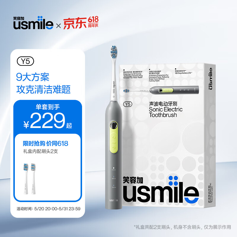 usmile 笑容加电动牙刷 男士声波自动牙刷 情侣礼物送男友 亮白能量刷 Y5越野灰价格:329.00元!
