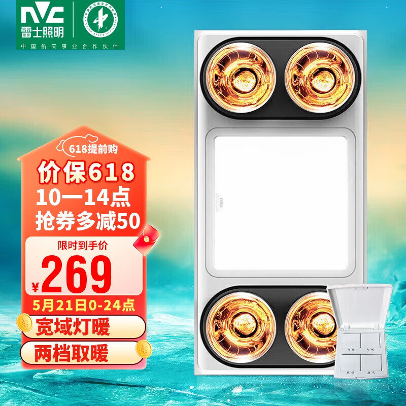 雷士(NVC) 浴霸灯暖照明排气一体集成300x600卫生间取暖换气照明三合一灯暖价格:579.00元!