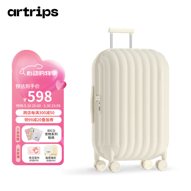 artrips行李箱拉杆箱男女万向轮旅行箱24英寸防刮面包款磨砂箱子 奶油白价格:748.00元!
