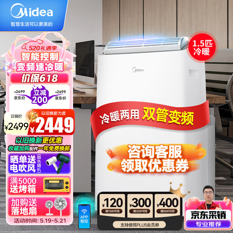 美的(Midea)移动空调冷暖1.5匹变频 京东小家智能生态 家用厨房空调一体机免安装免排水 KYR-35/BP3N8Y-PT价格:2499.00元!