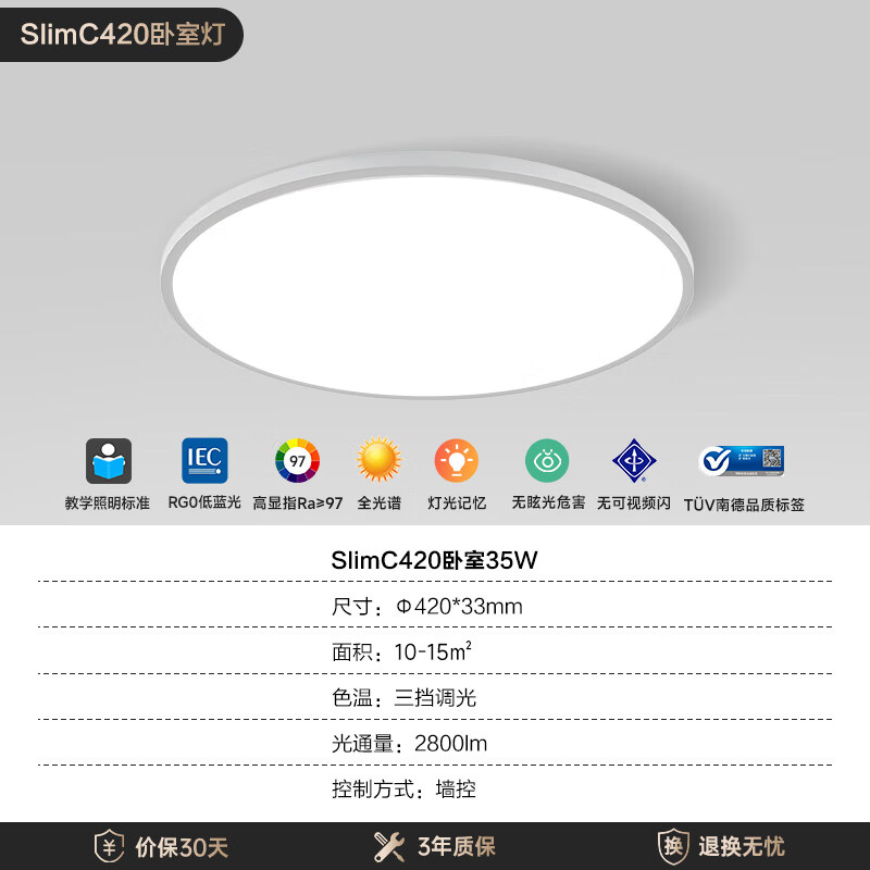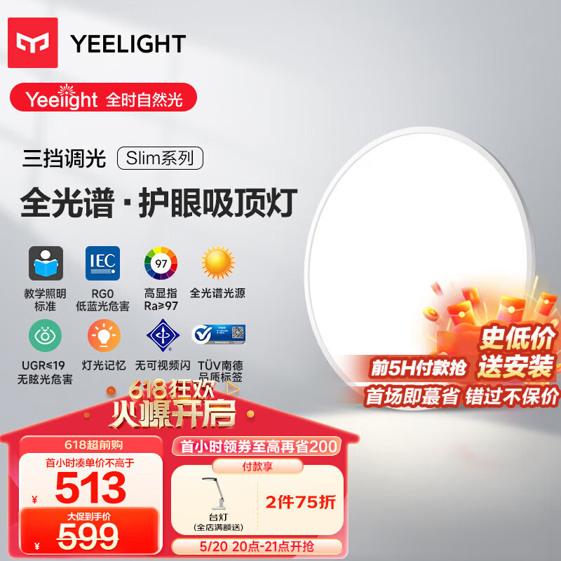 Yeelight易来led全光谱吸顶灯客厅卧室餐厅超薄低蓝光现代简约卧室灯420价格:749.00元!
