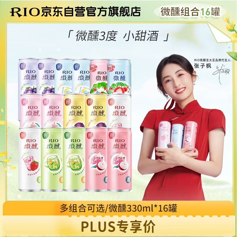 锐澳(RIO)洋酒 预调酒 果酒 鸡尾酒 3度 微醺系列 330ml*16罐 (随机发货)价格:109.00元!