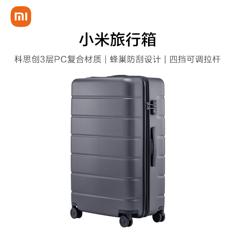小米行李箱男大容量拉杆箱万向轮商务旅行箱女密码箱24英寸灰色价格:399.00元!
