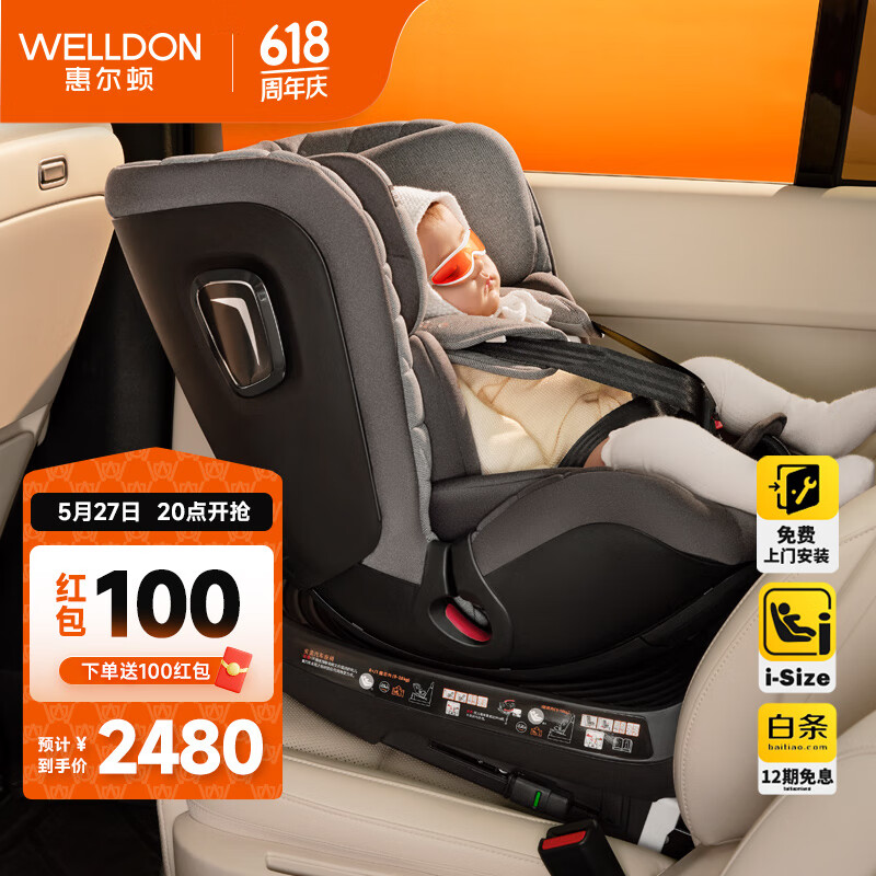 惠尔顿(Welldon)儿童座椅 0-7岁 360度旋转 i-Size认证 舒适头等舱 智转价格:2580.00元!