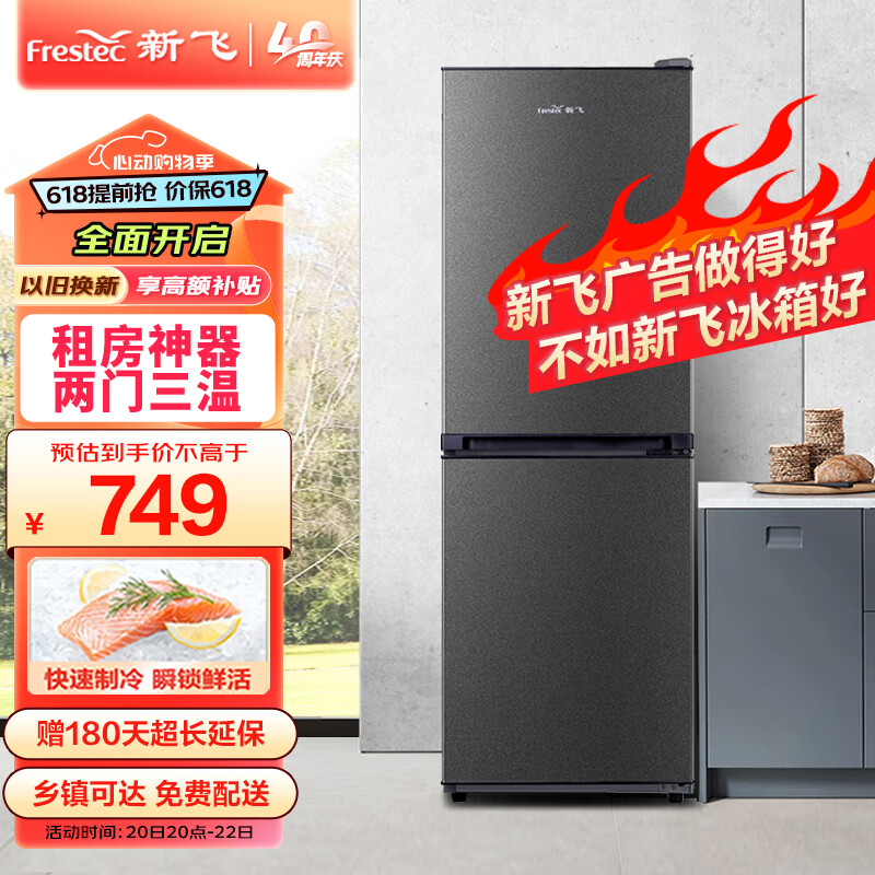 新飞(Frestec)170升双门两门家电冰箱小型家用租房 节能低音 二门双温 冷冻冷藏 小冰箱BCD-170K2AT价格:749.00元!